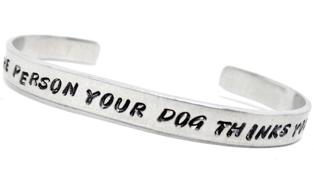 Be The Person Your Dog Thinks You Are - Aluminum Handstamped 1/4" Bracelet