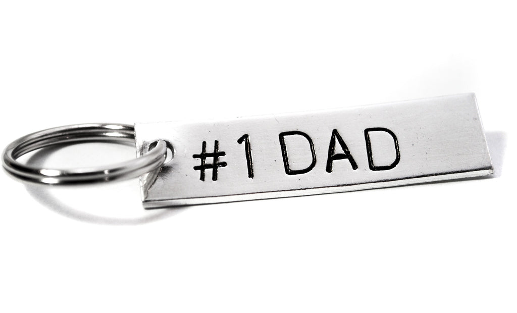 This shiny aluminum keychain has been stamped with '#1 DAD' in our supersize font. A great gift for fathers, or mad scientists who have given their twisted abominations the gift of life and the curse of speech. Let your dad know he is the best with this sturdy key chain!
