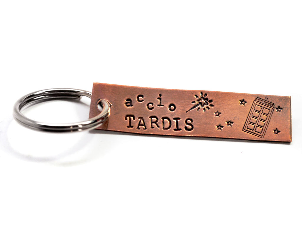 Accio TARDIS - [Doctor Who crossover] Copper Handstamped Keychain