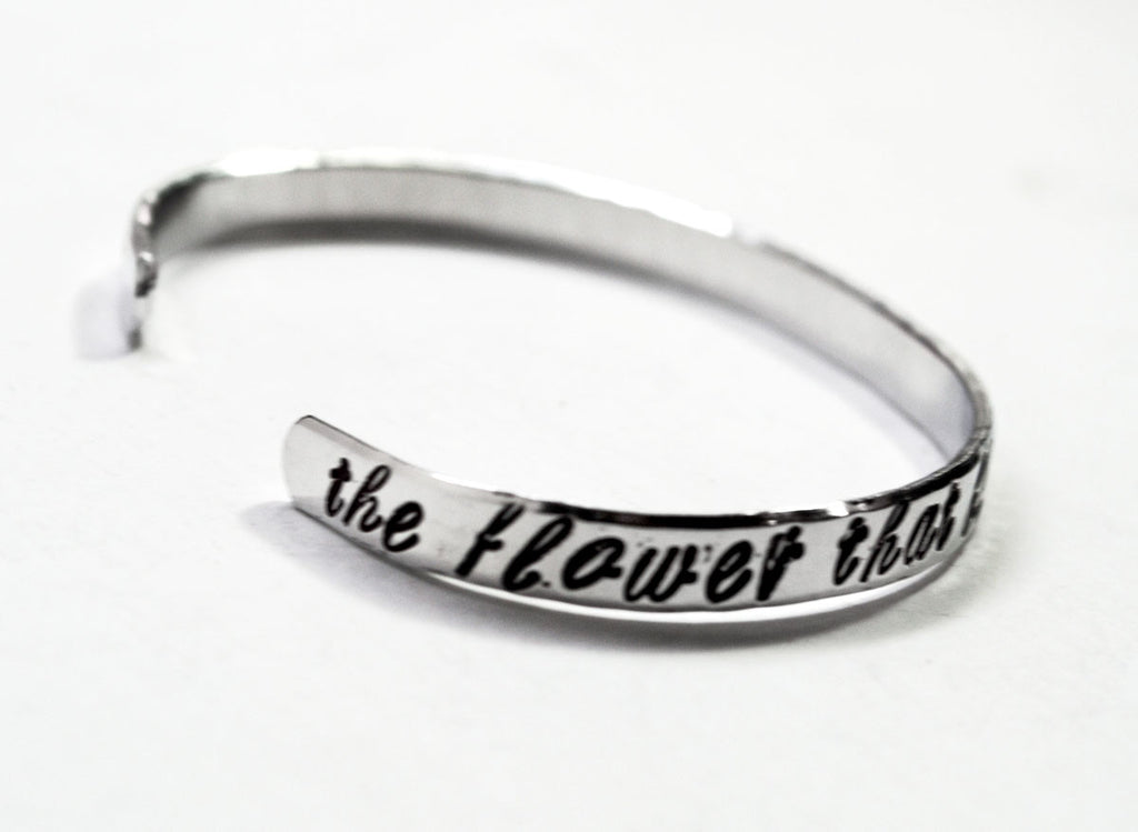 The Flower That Blooms In Adversity Is Most Rare - [Mulan] Aluminum Handstamped 1/4” Bracelet