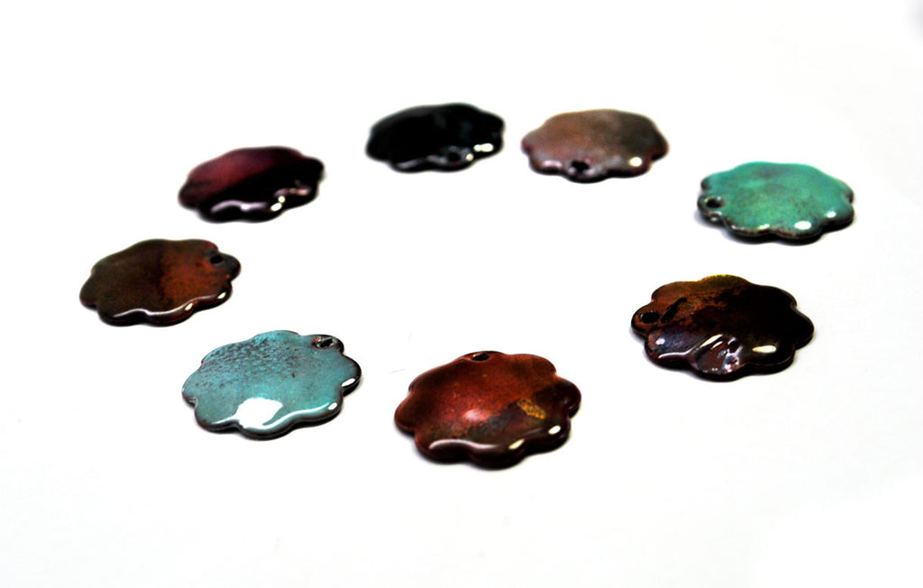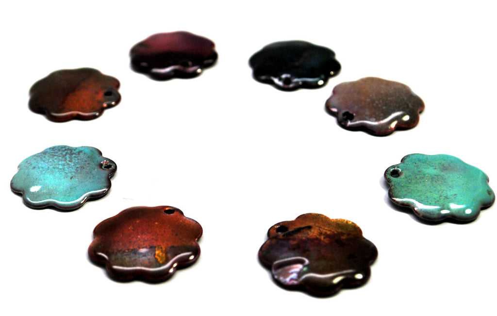 Because these earrings are enameled and fired by hand, colors may vary and no two sets will be identical, as each piece is truly one of a kind and can never be duplicated exactly.