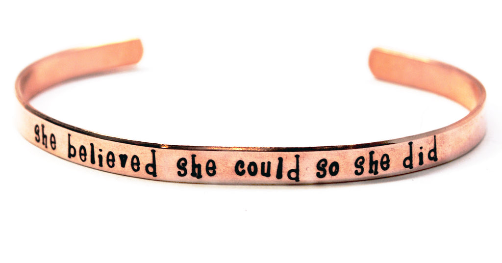 She Believed She Could So She Did - Skinny Copper Handstamped 3/16" Bracelet